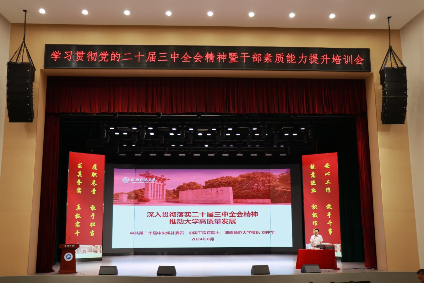 8月19日,劉仲華在湖南女子學院作題為《傳達學習黨的二十屆三中全會精神》的專題報告;8月30日,在湖南工程學院作題為《新時代大學高質量發展的戰略思考與實踐探索》的專題報告;8月31日,在湖南科技大學作題為《深入貫徹落實黨的二十屆三中全會精神推動大學高質量發展》的專題報告。宣講過程中,劉仲華結合參會經歷,從黨的二十屆三中全會的會議概況、重大意義、會議主題、主要內容、改革舉措等方面系統解讀了全會精神,并就高校如何貫徹落實“統籌推進教育科技人才體制機制一體改革”、推動高校高質量發展提出了具體路徑。