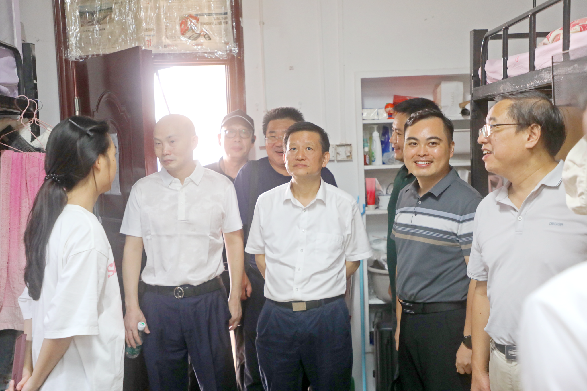 座談會后,蔣洪新前往二里半宿舍調研,深入宿舍與學生交流,了解學生宿舍情況,并提出三點要求:一是要充分利用宿舍樓空間,合理規劃,為學生提供便捷的生活區域;二是加強學生宿舍管理,開展衛生檢查,保持環境整潔;三要重視校園安全工作,加強食品安全、消防、用電等保障,守護學生生命財產安全。