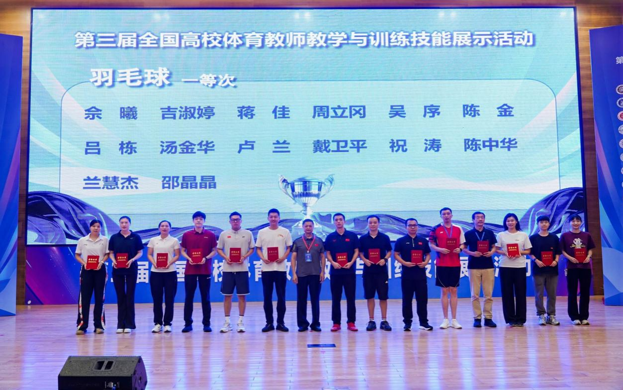 (供稿 體育學院)10月10日至13日,第三屆全國高校體育教師教學與訓練技能比賽在廣東華南理工大學舉行。我校教師蔣佳榮獲羽毛球項目一等獎、教師陳冰心榮獲操舞類項目二等獎。