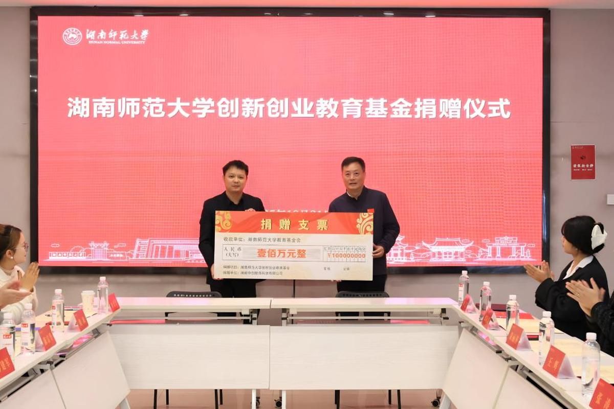 捐贈方湖南中創(chuàng)教育科技有限公司CEO彭建軍在發(fā)言中表示,企業(yè)將開放自身資源,為創(chuàng)業(yè)項(xiàng)目提供全流程支持,優(yōu)先對接校友項(xiàng)目,期待與學(xué)校、校友開展優(yōu)質(zhì)項(xiàng)目合作,實(shí)現(xiàn)互利共贏。