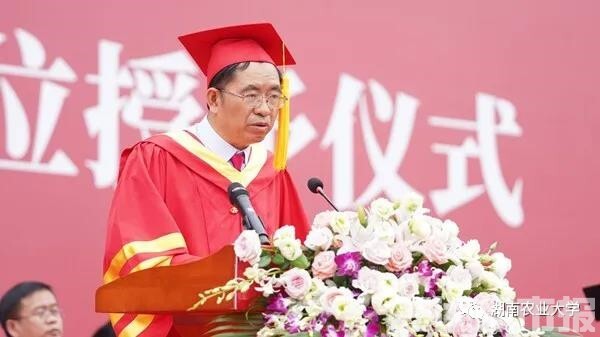 中國工程院院士、湖南農業大學校長鄒學校在講話中表示,當下是中華民族偉大復興的時代,是鄉村振興主題鮮明的時代,是有志青年中流擊水的時代。我們廣大學子要緊緊抓住大有可為的歷史機遇期,從容應對各種風險挑戰。他提出了三點囑托,一要修身立德。面對紛繁復雜的局面,要堅守內心的寧靜,走好人生的每一步。二要心懷夢想。身逢盛世,當不負盛世,將國家需要作為奮斗方向,將人民富足視為守望追求。三要博采眾長。帶著發現的眼睛,抱著謙卑的態度,學習他人的優點,做到行穩致遠。