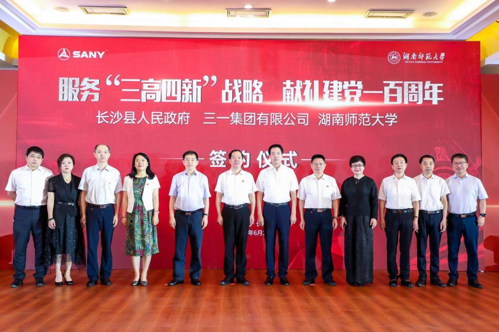 6月28日上午,湖南師范大學(xué)與三一集團(tuán)在長(zhǎng)沙縣三一產(chǎn)業(yè)園簽訂戰(zhàn)略合作框架協(xié)議,確立全面戰(zhàn)略合作伙伴關(guān)系,共建現(xiàn)代產(chǎn)業(yè)學(xué)院,主動(dòng)對(duì)接和服務(wù)我省“三高四新”戰(zhàn)略,為建黨100周年獻(xiàn)禮。三一集團(tuán)董事、三一重工股份有限公司總裁向文波,副總裁、產(chǎn)業(yè)發(fā)展事業(yè)部總經(jīng)理鐘衛(wèi)華,湖南師范大學(xué)校長(zhǎng)劉起軍,紀(jì)委書(shū)記姚春梅,副校長(zhǎng)唐賢清、楊震,長(zhǎng)沙縣委副書(shū)記、縣長(zhǎng)張作林,長(zhǎng)沙縣政府黨組成員、副縣長(zhǎng)彭正球等出席簽約儀式。