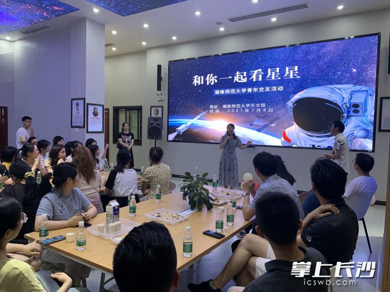 長(zhǎng)沙晚報(bào)掌上長(zhǎng)沙7月10日訊(通訊員 段婷 全媒體記者 舒文)昨夜星辰昨夜風(fēng),畫(huà)樓西畔桂堂東。身無(wú)彩鳳雙飛翼,心有靈犀一點(diǎn)通。近日,由湖南師范大學(xué)工會(huì)主辦,物理與電子科學(xué)學(xué)院工會(huì)承辦的“和你一起看星星”青年交友活動(dòng)在湖南師范大學(xué)天文館成功舉辦。來(lái)自湖南師大法學(xué)和省委編辦、中南大學(xué)、中南林業(yè)科技大學(xué)、省腫瘤醫(yī)院、省人民醫(yī)院等十余家機(jī)關(guān)和企事業(yè)單位的40余名高學(xué)歷高素質(zhì)的優(yōu)秀青年在活動(dòng)現(xiàn)場(chǎng)盡情展現(xiàn)個(gè)人風(fēng)采,尋找志同道合的朋友。