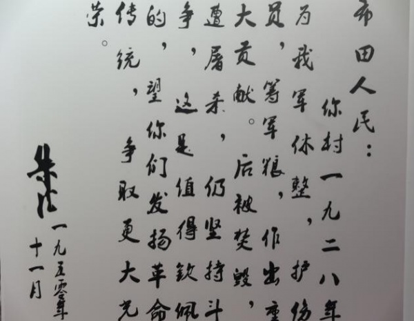 圖為朱德于革命勝利后給布田人民的信。通訊員涂銘供圖