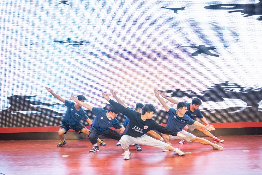 時間流逝,實踐活動臨近尾聲,隊員們積極籌備了成果匯報展演,給觀眾帶來了一場別開生面的紅色文化盛宴。隊員們出演了快板《同仁堂》、合唱《強軍戰歌》和武術表演三個節目。在武術表演中,隊員們將在門樓廣場上所教授的武術搬到了舞臺上,大開大合,姿態飄逸,氣勢如虹。這些精彩的節目吸引了來自花明樓炭子沖村近百名觀眾觀看。
