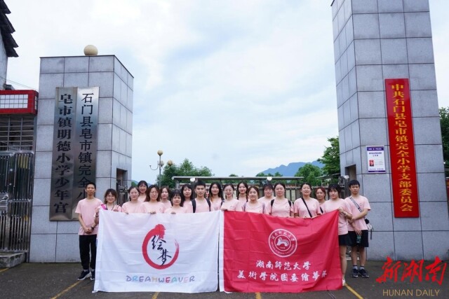 科教新報·新湖南客戶端訊(通訊員 秦念志 王璐璐)7月12日,湖南師范大學美術學院“繪夢隊”暑期社會實踐團前往常德市石門縣皂市鎮完全小學,開展主題為“童心向黨,共繪夢想”實踐活動。此次實踐活動旨在引導和幫助當地青少年兒童傳承紅色基因,立志向、修品行、練本領,從小培養熱愛黨、熱愛祖國、熱愛人民的情懷,聽黨話、跟黨走,努力成長為能夠擔當民族復興大任的時代新人。