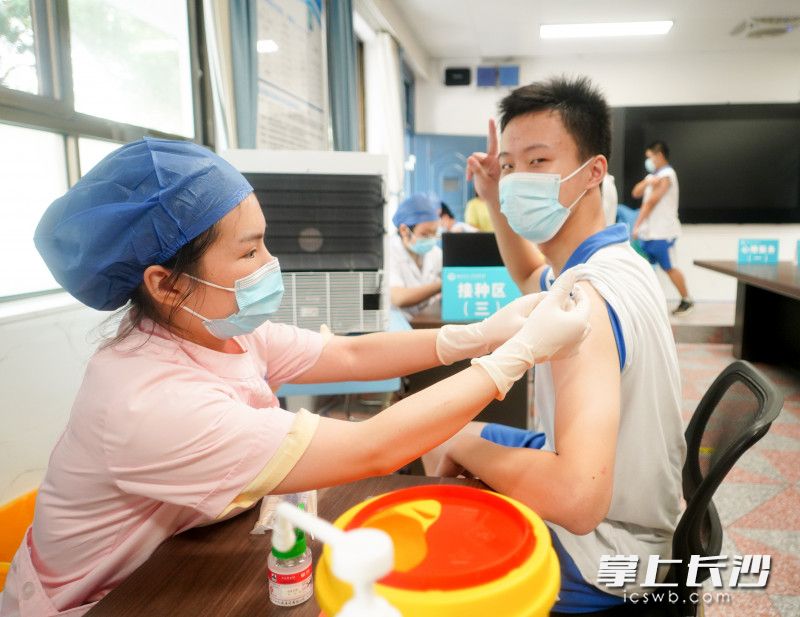 長沙晚報掌上長沙8月8日訊(全媒體記者 舒文 通訊員 蘇曉玲)“感謝國家的政策,感謝學校的精心安排,讓我們在下個學期的學習里更加安心了。”今日上午8時5分,湖南師大附中高三學生鄒伊凡同學在校接種完新冠疫苗后,對記者說。今日,湖南師大附中根據自愿接種、應種盡種、就近方便原則,組織了家住長沙城區的高一至高三學生入校接種新冠疫苗。