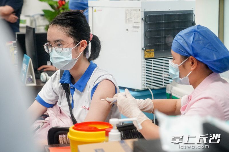對于湖南師大附中2013班的學生艾心揚而言,這次接種過程非常暖心。她告訴記者,前不久她因打籃球不小心扭到了腳,導致行動不便。當了解她的特殊情況后,湖南師大附中黨委書記黃月初第一時間為她開辟了綠色通道。從10時15分入校到順利接種完第一針疫苗,整個過程共耗時15分鐘。讓艾心揚更加感動不已的是,黃月初及幾位教師志愿者老師全程都在陪著她。