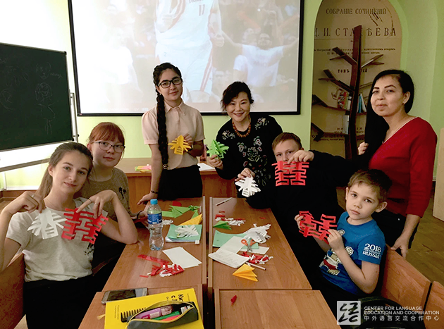 接著是解決生源問題。她通過網(wǎng)絡(luò)、電視及各種渠道不厭其煩地講述中文學(xué)習(xí)的意義,發(fā)布招生信息,并不失時機(jī)地帶領(lǐng)一些學(xué)生開展多種形式的中華文化秀:如演唱中俄民歌、體驗剪紙藝術(shù)、欣賞中國服飾文化……這些活動大大提升了學(xué)生們對中華文化的興趣,激發(fā)了學(xué)習(xí)中文的熱情,不少人因此走進(jìn)中文課堂。
