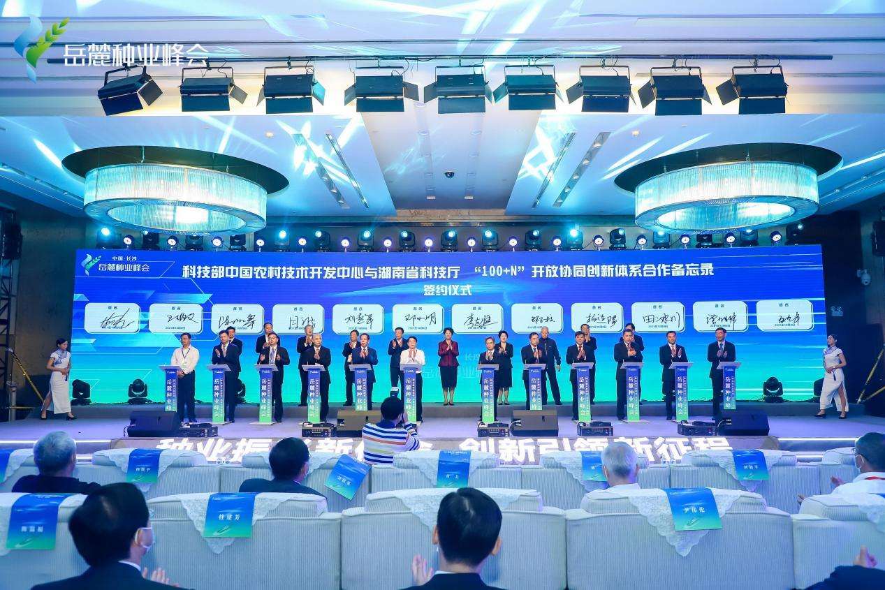 峰會上,湖南師范大學校長劉起軍代表學校簽署了“100+N”開放協同創新體系合作備忘錄,湖南師范大學副校長楊震代表學校簽署了岳麓山種業創新中心共建協議,標志著湖南師范大學正式加入科技部中國農村技術開發中心與湖南省科技廳“100+N”開放協同創新體系,并和13家單位簽約共建岳麓山種業創新中心。