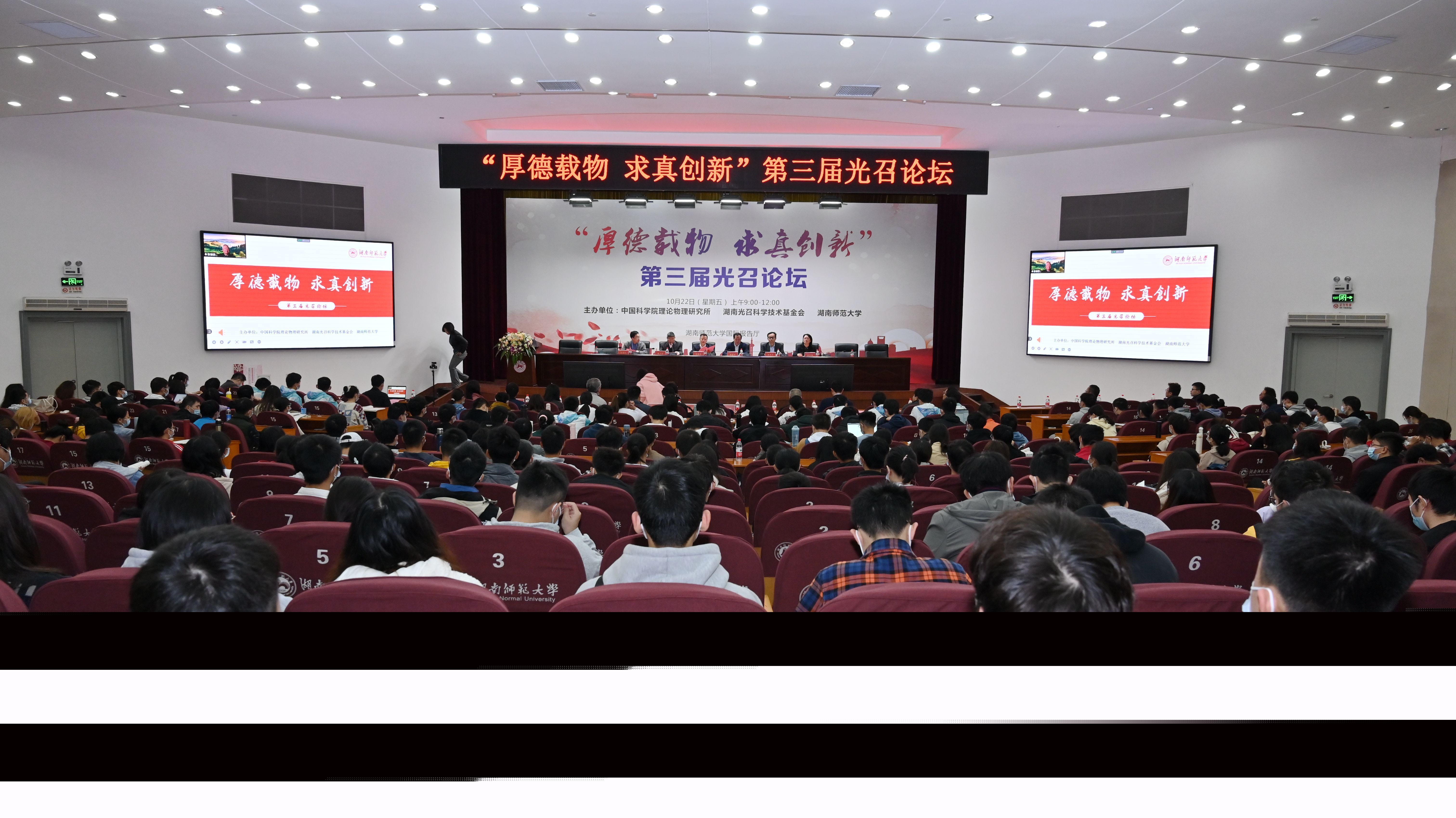 10月22日上午,由湖南省科技廳、湖南光召科學技術基金會、中國科學院理論物理研究所和湖南師范大學共同主辦的“厚德載物,求真創新”第三屆光召論壇在湖南師范大學國際學術報告廳舉行。中科院理論物理研究所張肇西院士在線出席活動。國防科技大學電子科學學院副院長王飛雪教授,湖南省科技廳副廳長、一級巡視員賀修銘,湖南省科技廳二級巡視員劉鐵兵,湖南師范大學1983級校友、湖南三書禮文化發展有限公司董事長蘇文華,湖南師范大學校長劉起軍、紀委書記姚春梅等出席活動現場。論壇由湖南光召科學技術基金會秘書長黃衛東主持。