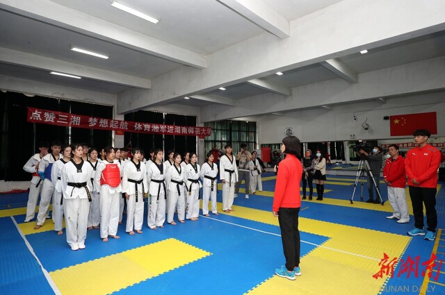 彭姍現(xiàn)場(chǎng)指導(dǎo)湖南師大跆拳道隊(duì)