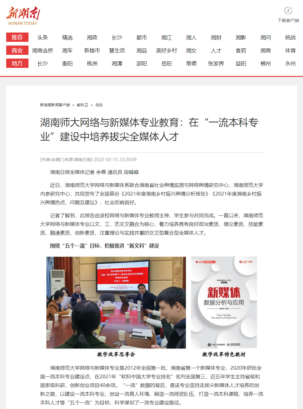 新湖南:湖南師大網絡與新媒體專業教育:在“一流本科專業”建設中培養拔尖全媒體人才