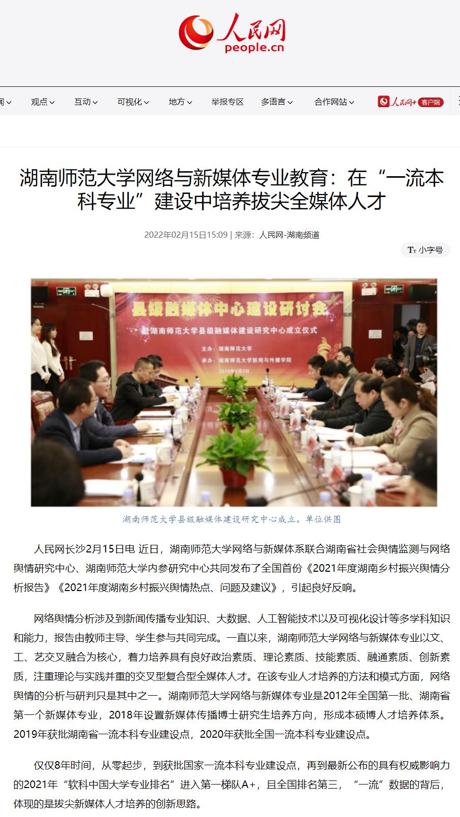 人民網:《湖南師范大學網絡與新媒體專業教育:在“一流本科專業”建設中培養拔尖全媒體人才》