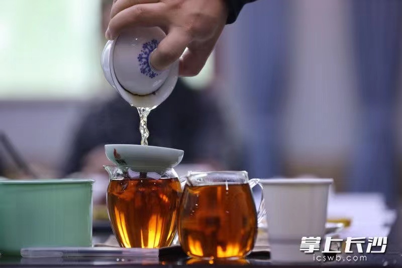 在位于中和樓的湖南師大語言與文化研究院會議室,青年教師楊卓結合自身13年的學茶、品茶、藏茶經歷,系統地介紹了湖湘茶文化及對外傳播情況,分析了茶葉與茶文化所彰顯出的人文精神與價值,并與現場師生一同開展沏茶、賞茶、聞茶、品茶、敬茶等實踐體驗。鄭燕虹教授、冉毅教授從術語翻譯、傳播能力等視角,引導學生對新時代湖湘茶文化對外傳播路徑進行思考。