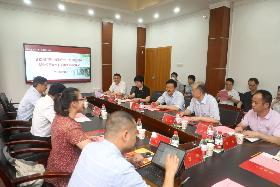 6月22日,湖南省教育廳副廳長王仁祥、職業教育與成人教育處處長崔書芳、副處長殷劭一行到湖南師范大學考察調研職業技術教育發展情況并舉行座談會。