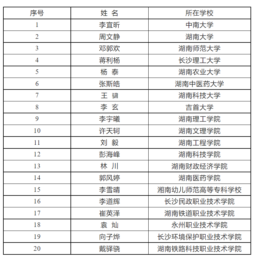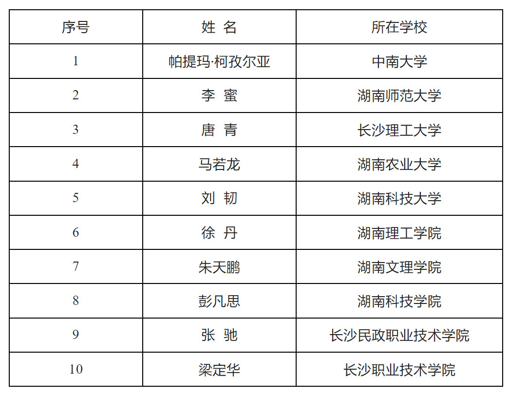 日前,省委宣傳部、省委教育工委、省教育廳聯合開展了湖南省高校第二屆最美思政課教師、最美輔導員、最美大學生(簡稱“三個最美”)推選活動。經高校推薦、資格審核、專家評審、結果公示,共推選出湖南師范大學邢鵬飛等10名最美思政課教師、中南大學帕提瑪·柯孜爾亞等10名最美輔導員、中南大學李宜昕等20名最美大學生。