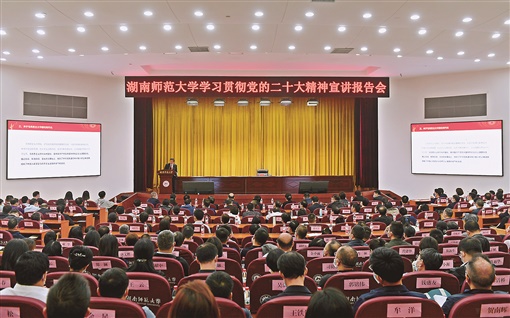上圖:11月9日,湖南師范大學學習貫徹黨的二十大精神宣講報告會現場。