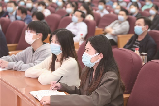 會場座無虛席,大家認真聆聽,時不時仔細記錄。“我們正推動學校各二級黨組織把準要求、結合實際、務求實效,讓黨的二十大精神在基層生根發芽,成為各項事業高質量發展的強大力量。”校黨委副書記周俊武告訴記者。