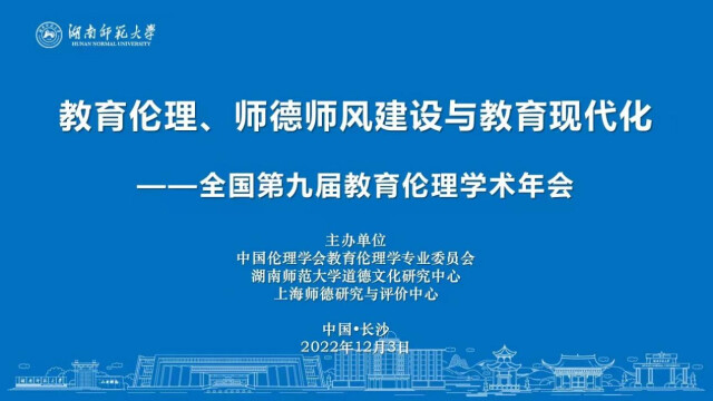 湖南日報12月6日訊(通訊員 楊巧靜 全媒體記者 余蓉)為推動教育倫理學理論研究和師德建設實踐,全國第九屆教育倫理學術年會近日在湖南師范大學道德文化研究中心舉行,來自中國倫理學會、中國社會科學院、中山大學、北京師范大學等高校和科研機構的300多位專家學者、研究生通過線上線下參加會議。