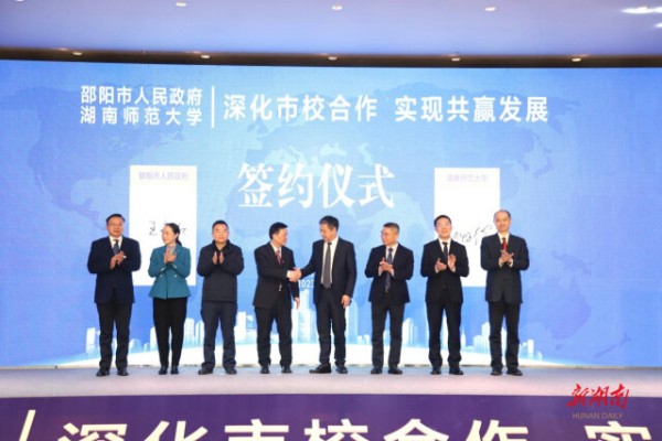 湖南日報2月28日訊(通訊員 廖帥 馬鐵泉 全媒體記者 余蓉)深化市校合作,實現共贏發展。2月27日,湖南師范大學與邵陽市人民政府簽署了市校戰略合作協議,并舉行了科技賦能經濟發展院士懇談會、人才助力地方建設座談會、教育服務鄉村振興經驗交流會,共同描畫市校合作新藍圖。