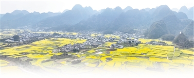 貴州省黔西南布依族苗族自治州興義市萬峰林景區(qū)秀美田園畫卷。