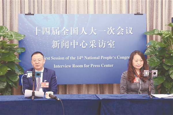 肖北庚(左)、尹雙鳳(右)代表接受采訪。