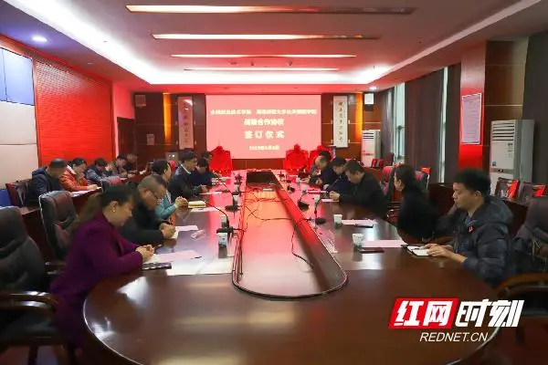 隨后,永州職業技術學院黨委副書記、校長鄭文飛和湖南師范大學公共管理學院院長毛新志代表雙方簽署合作協議。雙方領導共同為“湖南師范大學公共管理學院 永州職業技術學院 研學中心”“湖南師范大學公共管理學院研究生實踐教學基地”和“湖南師范大學高等教育自學考試合作助學點”揭牌。