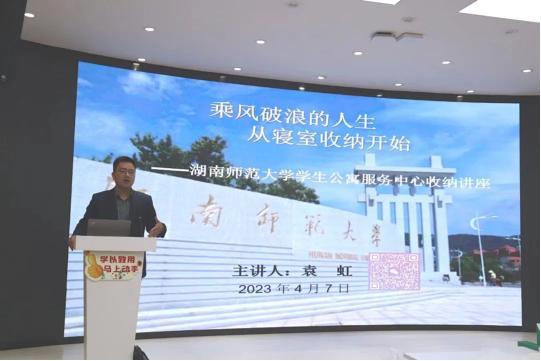 近日,湖南師范大學后勤管理處學生公寓服務中心組織開展了大學生寢室收納講座,邀請到了人社部首屆新職業大賽全國整理收納師比賽裁判員袁虹老師現場向同學們傳授寢室收納技能,培養同學們整理收納思維,加強勞動育人。