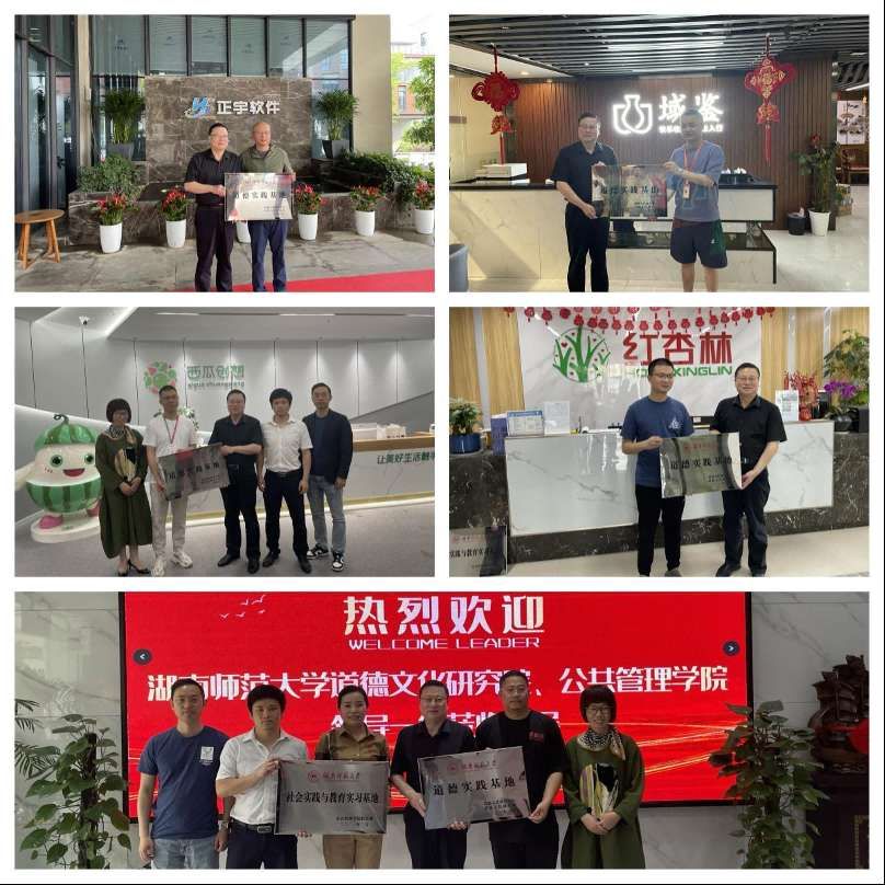 5月4日,湖南師范大學道德文化研究中心、哲學系與湖南域鑒文化創意有限公司、湖南西瓜創想科技有限公司、長沙時代跳動科技有限公司、湖南紅杏林文化傳播有限公司、湖南正宇軟件技術開發有限公司等五家企業舉行道德實踐基地、社會實踐與教育實習基地掛牌儀式。學校道德文化研究中心主任、道德文化研究院院長兼哲學系主任向玉喬教授,道德文化研究院副院長文賢慶,道德文化研究中心研究員及哲學系教授郭園蘭、胡好,道德文化研究院辦公室主任王伊帆以及湖南省電子信息協會執行會長陽純正等參加了掛牌儀式。