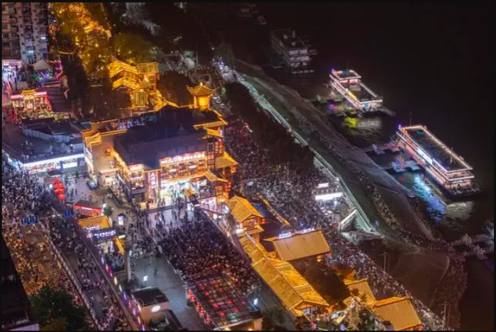 數(shù)據(jù)顯示,僅“五一”假期首日,洪崖洞景區(qū)進(jìn)園人數(shù)9.68萬人次,未進(jìn)園在洪崖洞周邊的滄白路、千廝門大橋橋面以及嘉濱路“打卡”游客瞬時(shí)最高客流量接近3萬人。