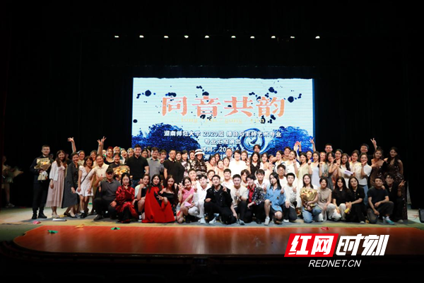 紅網時刻新聞6月8日訊(記者 潘錦 通訊員 廖靜雯 攝影 宋嘉帥)6月6日晚,湖南師范大學新聞與傳播學院“同音共韻”2020級播音與主持藝術專業匯報演出在湘江劇院舉行。湖南師范大學新聞與傳播學院黨委書記沈賢嵐,正處級組織員王云,副院長王海剛,著名主持人、金話筒獎獲得者、學院播音主持系新引進教師張丹丹教授,播音與主持藝術系系主任顏湘君教授等參加。