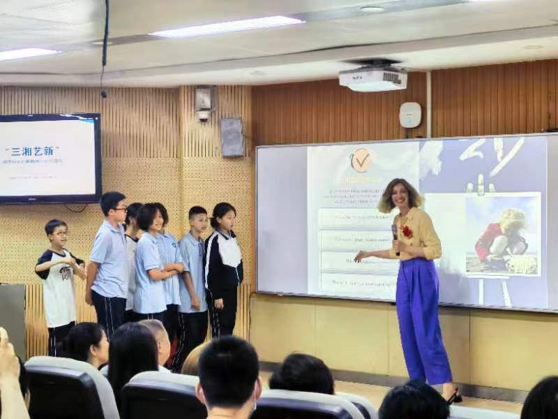在長沙市一中馬王堆中學活動現場,由湖南師范大學美術學院外籍專家Tamara Dinka和蘇豐博士帶來講座《遇見未來》呈現國際科技、生態、藝術跨學科美育創新路徑,啟迪育人新視角;全國“百佳美育”校長羅立以《新美育,育新人》為題分享構建“學科、課程、社團、平臺”四位一體人才培養機制的跨學科美育辦學實踐經驗,以個人跨學科美術創作獲國際獎項經歷啟示青少年探索跨學科融合路徑;長沙市文創十大工匠金手指傳人陳楓博士呈現獲國際獎項的高校草木染、地域特色文創創意中的跨學科特質;芙蓉區骨干教師宋占玲歸納獲教育部獎項“楚漢美韻”中學校本創意工作坊可視化轉化馬王堆地域藝術精神,以跨學科研究學習的育人路徑。
