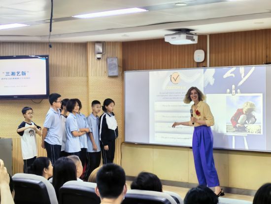 活動(dòng)還邀請了業(yè)界專家就相關(guān)話題進(jìn)行交流探討。湖南師范大學(xué)美術(shù)學(xué)院外籍專家Tamara Dinka和蘇豐博士帶來講座《遇見未來》,呈現(xiàn)了國際科技、生態(tài)、藝術(shù)跨學(xué)科美育創(chuàng)新路徑,啟迪育人新視角;全國“百佳美育”校長羅立以《新美育,育新人》為題分享構(gòu)建“學(xué)科、課程、社團(tuán)、平臺(tái)”四位一體人才培養(yǎng)機(jī)制的跨學(xué)科美育辦學(xué)實(shí)踐經(jīng)驗(yàn),以個(gè)人跨學(xué)科美術(shù)創(chuàng)作獲國際獎(jiǎng)項(xiàng)經(jīng)歷啟示青少年探索跨學(xué)科融合路徑;長沙市文創(chuàng)十大工匠金手指傳人陳楓博士呈現(xiàn)獲國際獎(jiǎng)項(xiàng)的高校草木染、地域特色文創(chuàng)創(chuàng)意中的跨學(xué)科特質(zhì);芙蓉區(qū)骨干教師宋占玲,則以曾獲教育部獎(jiǎng)項(xiàng)的“楚漢美韻”中學(xué)校本創(chuàng)意工作坊可視化轉(zhuǎn)化馬王堆地域藝術(shù)精神為例子,探討跨學(xué)科研究學(xué)習(xí)的育人路徑。