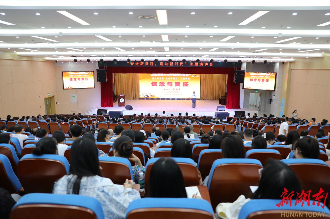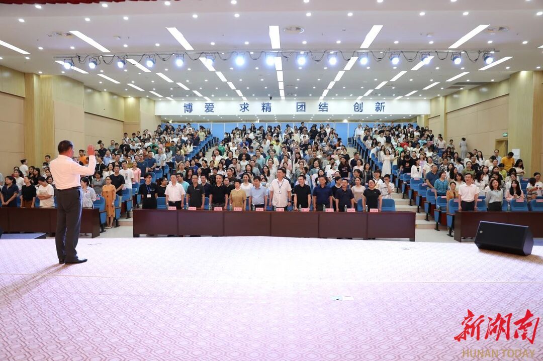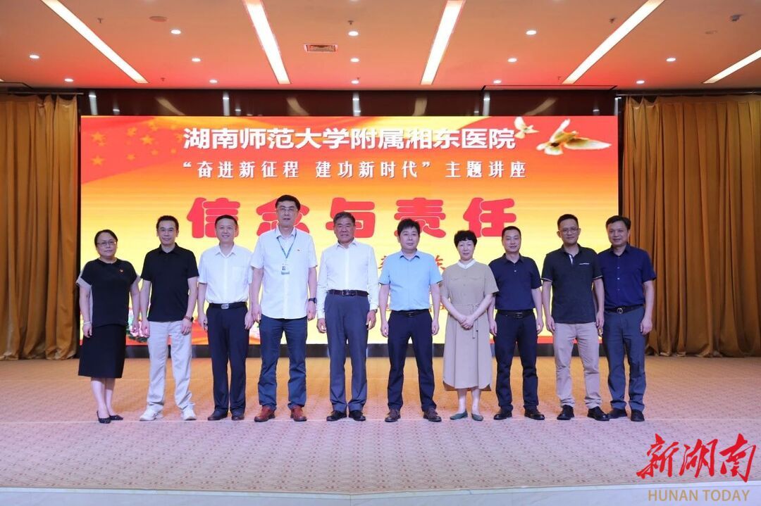 大眾衛生報·新湖南客戶端9月16日訊(通訊員 徐虹 鄧帥)9月15日晚,全球社會教育家論壇聯席主席、亞洲八大名師、全國知名演講家蔡朝東老師受邀到湖南師范大學附屬湘東醫院,作“奮進新征程,建功新時代——信念與責任”主題演講,湖南師范大學附屬湘東醫院全體院領導出席,市教育系統代表、醫院中層干部、職工代表、醫學生代表共500余人參加講座。