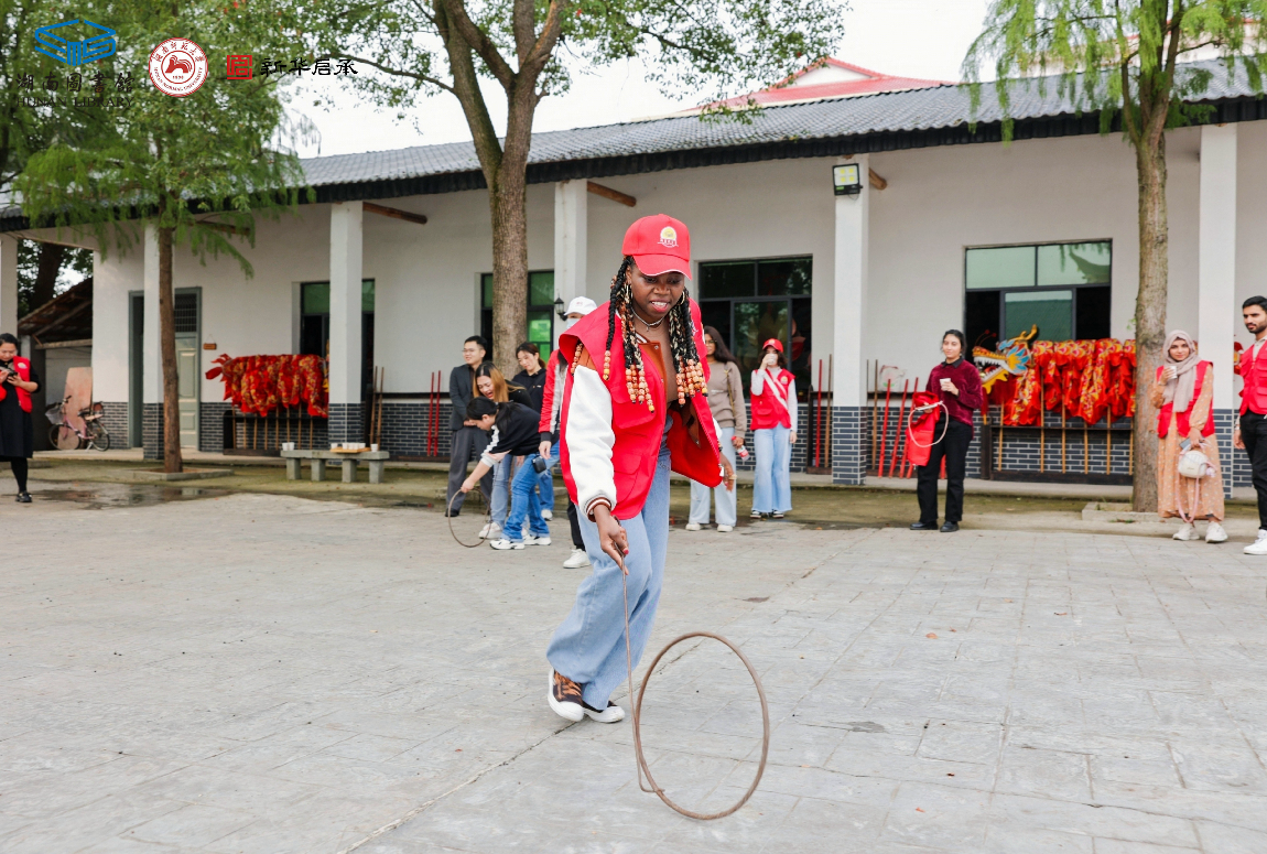 從岳陽樓出發(fā),大家一起來到著名的甜酒之鄉(xiāng)長樂古鎮(zhèn),不僅品嘗到了甜酒的醇香,還親手參與制作甜酒的全過程。在這里,來自異國他鄉(xiāng)的留學(xué)生們,也了解到了更多中國民俗文化。大家一起團結(jié)協(xié)作舞龍燈,也玩起了中國“傳統(tǒng)玩具”滾鐵環(huán)、踩高蹺。