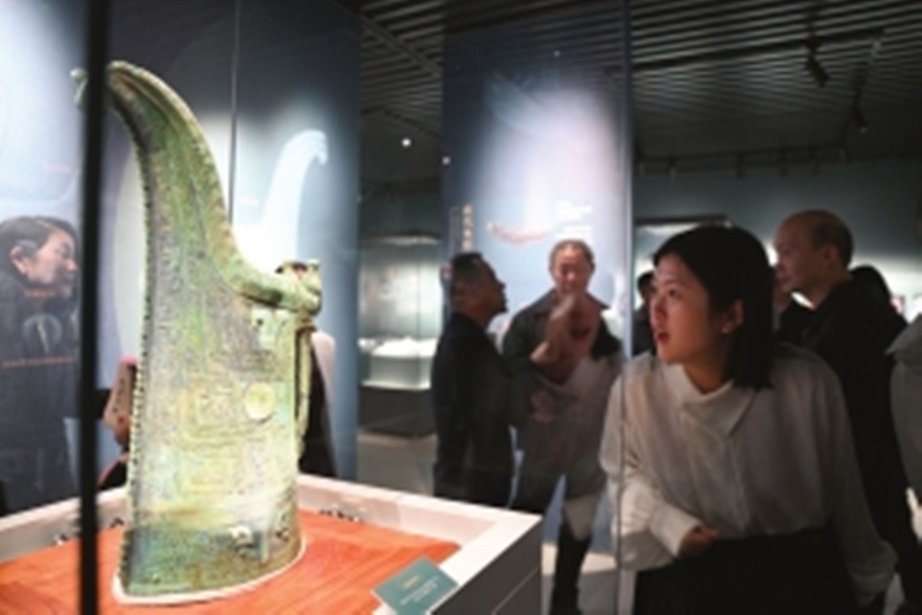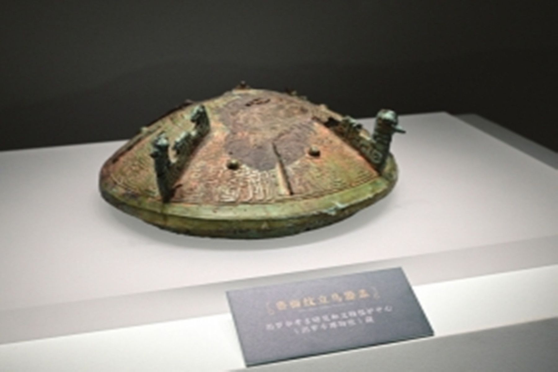 展出的獸面紋立鳥器蓋。
