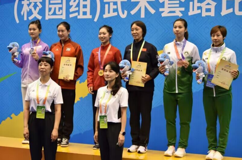 據(jù)悉,本次比賽武術(shù)項目湖南代表隊大學(xué)組共派出8名運動員,8人均來自湖南師范大學(xué)。歷經(jīng)4天的賽事,湖南代表隊大學(xué)組拿下2金1銀、1個第四、1個第五、3個第六,1個第八的好成績。