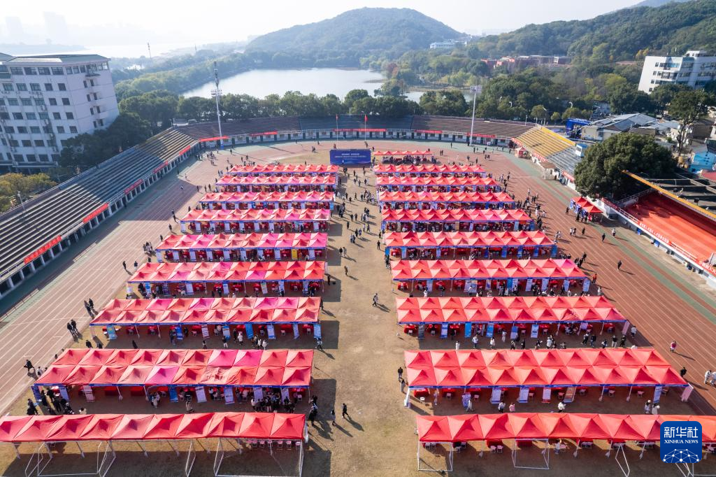 ??這是12月1日在湖南師范大學體育場拍攝的招聘會現場(無人機照片)。
