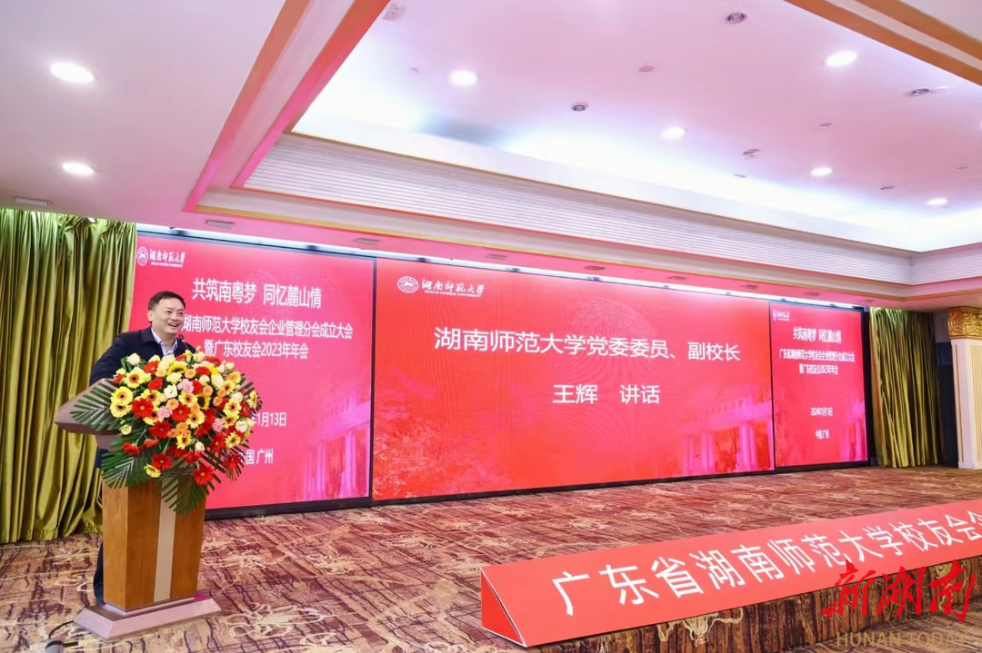 科教新報·新湖南客戶端訊(記者 陳潔)1月13日下午,“共筑南粵夢·同憶麓山情”湖南師范大學廣州校友會企業(yè)家分會成立大會在廣州大廈隆重舉行,湖南師大校黨委副書記周俊武,副校長王輝,校友總會·教育基金會秘書長黃麗萍,岳麓山大學科技城人才聚合部負責人何鋒,來自香港、澳門、廣東、深圳等各地校友分會負責人和150余家校友企業(yè)家代表200余人參加成立大會,呼應“回鄉(xiāng)興湘”召喚。