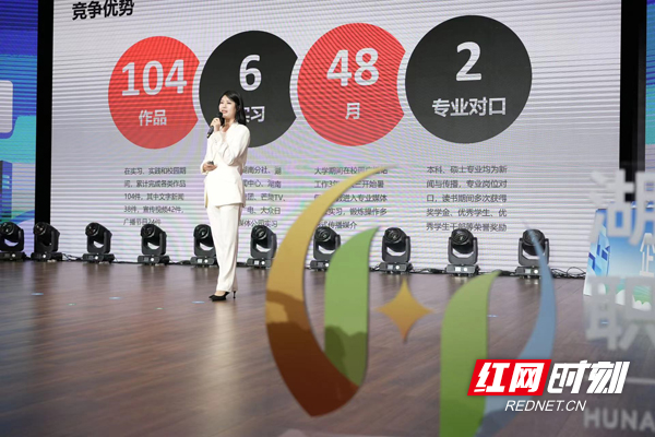 作為本次大賽的重頭戲,冠軍爭奪賽環節由主題陳述、評委提問、天降offer三部分組成。比賽現場,先由選手進行限時5分鐘的主題陳述;專家評委針對選手陳述進行提問,選手作答后對其進行現場打分。現場,天降offer環節,中鐵五局集團有限公司、湖南新華書店集團、湖南教育報刊集團、愛爾眼科醫院集團股份有限公司、黑馬科教控股集團(湖南)有限公司等單位代表蒞臨現場,組成“心選團”,為表現精彩的選手提供工作offer。
