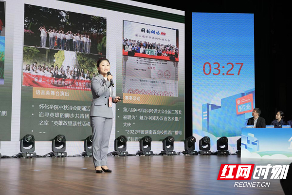 老師是人類靈魂的工程師。受張桂梅老師的故事激勵,來自懷化學院的華香希望成為一名鄉村初中化學老師,她說,“我從大山深處來,未來也將用我的專業反哺大山的孩子,通過努力學習專業知識,不斷參加教學實踐,成為更多孩子成長路上的那一束光。”她的精彩分享與反哺基層的情懷,也獲得了現場評委一致好評,給出97.63的全場最高分。