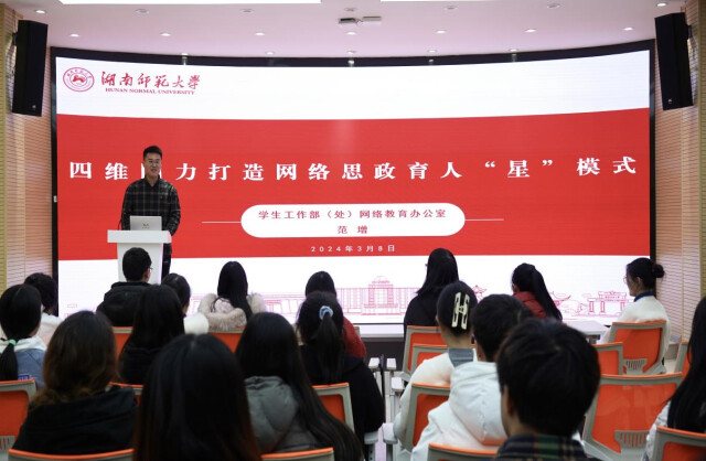 此外,學生工作部網絡教育辦公室范增老師以“四維四力打造網絡思政育人‘星’模式”為題,向學生們介紹了學校近年來用心用情構建“貼近學生、關愛學生、服務學生”的網絡育人“星”樣態。