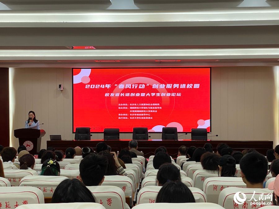 人民網長沙3月29日電 (記者向宇)3月28日下午,2024年“春風行動”創業服務進校園活動——校友返長話創業暨大學生創業論壇在湖南師范大學中和講堂舉行,近百名有創業意向的大學生參加。