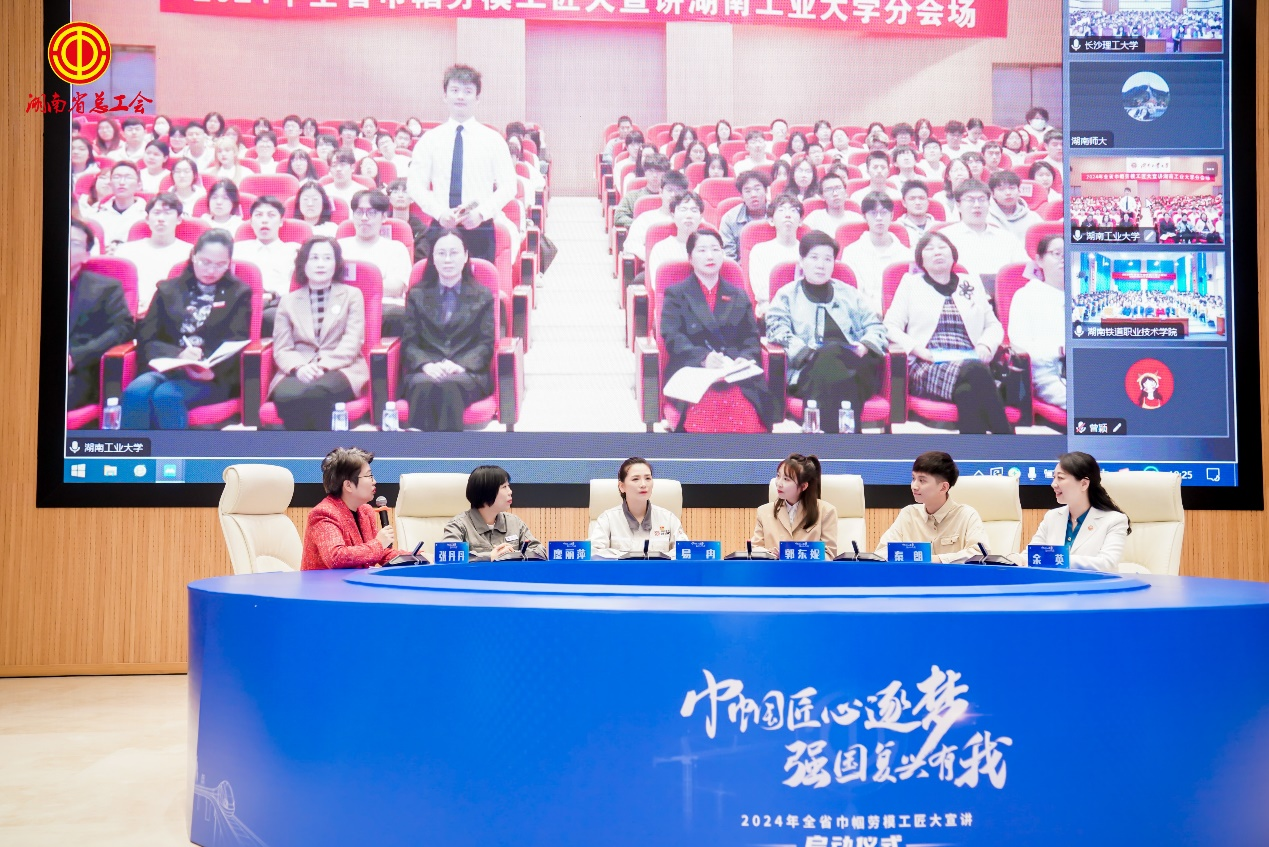 工人日?qǐng)?bào)客戶端記者王鑫 方大豐 通訊員 易麗鵬 4月10日,“巾幗匠心逐夢(mèng) 強(qiáng)國(guó)復(fù)興有我”2024年湖南省巾幗勞模工匠大宣講啟動(dòng)儀式在湖南師范大學(xué)舉行?;顒?dòng)還設(shè)立長(zhǎng)沙理工大學(xué)、湖南工業(yè)大學(xué)、湖南鐵道職業(yè)技術(shù)學(xué)院三個(gè)分會(huì)場(chǎng)。四所高校的800多名師生代表聆聽(tīng)宣講。湖南省人大常委會(huì)副主任、省總工會(huì)主席周農(nóng)宣布活動(dòng)正式啟動(dòng)。