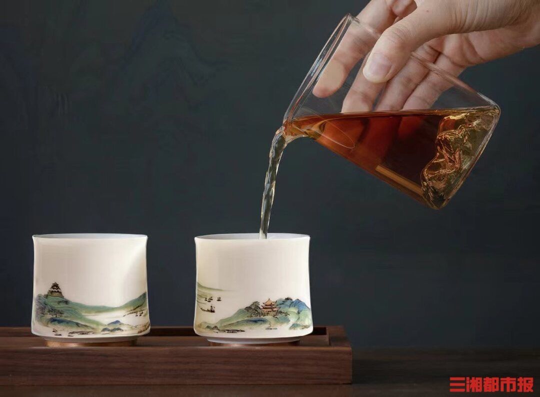 團(tuán)隊(duì)基于中國(guó)湖南省、日本滋賀縣結(jié)緣的勝景——洞庭湖、琵琶湖以及兩湖畔屹立的岳陽(yáng)樓與彥根城展開(kāi)設(shè)計(jì),在晶瑩剔透的白瓷雙盞杯上呈現(xiàn)出兩省縣自然、人文的代表性元素。“湘瓷茗杯”高6厘米,直徑6.5厘米,以白瓷為載體,釉下五彩為表現(xiàn)形式,采用德國(guó)進(jìn)口金水、手工描繪,經(jīng)1330度以上高溫?zé)疲涮ス羌?xì)柔堅(jiān)致,溫潤(rùn)如玉,剔透光滑,器體在光線照耀下,可映見(jiàn)指影,叩之其音清悅悠揚(yáng),猶如敲擊金屬,鏗然作響。作品體現(xiàn)了“文明互鑒、創(chuàng)新融合、合作共贏”的主題理念,象征美美與共,和而不同。