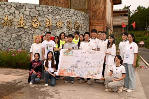 活動最后,五校實踐團隊在活動室前坪合影留念,隨后開展由黨中央和教育部共同舉辦的“以青春之名,行文明之旅”全國大學生文明旅游暑期實踐活動,各隊在旗幟上進行簽名紀念,并相互交流實踐心得,分享研學所獲。
