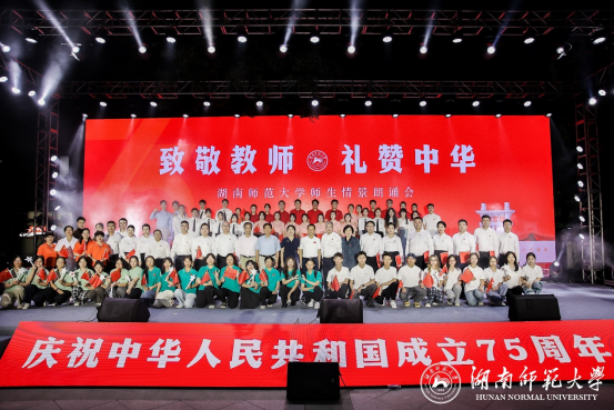 為慶祝中華人民共和國成立75周年,營造愛黨愛國、尊師重教的濃厚氛圍,團結凝聚廣大教職員工牢記使命,砥礪奮進,加快推進學校“雙一流”建設,9月26日晚,湖南師范大學舉辦“致敬教師 禮贊中華”師生情景朗誦會。