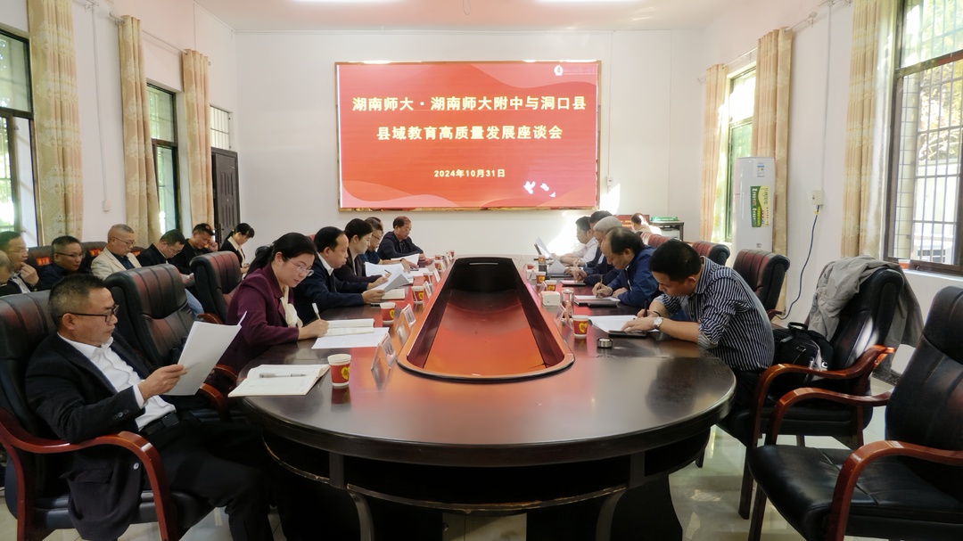 新洞口客戶端11月1日訊(記者 歐陽沐娟)10月31日,湖南師范大學副校長唐賢清,湖南師大基礎教育發展中心主任蔡炳華,湖南師大附屬中學黨委書記謝永紅,湖南師大基礎教育發展中心副主任楊棟、項目部部長李東權與洞口縣委副書記、統戰部部長郭向榮,縣政協黨組書記、主席候選人向兵及縣教育局、洞口縣第一中學、縣教研室等相關單位負責人、部分教師代表齊聚一堂,共話洞口縣域教育高質量發展。