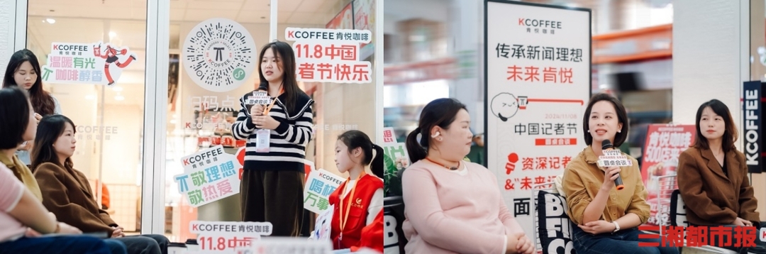 “如何提高新聞敏感度?”“成為專業媒體人的過程中需要培養哪些能力?”“如何利用新聞理論知識提升新聞實踐能力?”……記者節前夕,一場名為“傳承新聞理想 未來肯悅”的主題圓桌會,在湖南師范大學肯悅咖啡同學店進行。活動現場,資深記者與來自湖南師范大學融媒體中心的同學們、校園小記者面對面,暢談新聞理想。